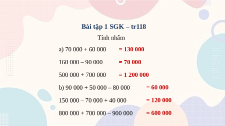 PHÉP CỘNG, PHÉP TRỪ LUYỆN TẬP