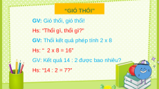 GV: Thổi kết quả phép tính 2 x 8 Hs: “ 2 x 8 = 16”