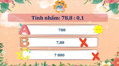 Tính nhẩm: 78,8 : 0,1 788 7,88 7 880