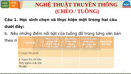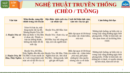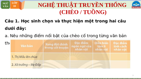 NGHỆ THUẬT TRUYỀN THỐNG VĂN 10 (CHÈO / TUỒNG)