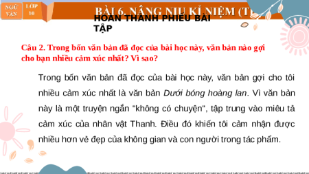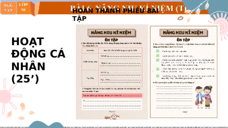 NGỮ LỚP VĂN 10 THƠ Bài 6: NÂNG NIU KỈ NIỆM ÔN TẬP BÀI 6: NÂNG NIU KỶ NIỆM HOÀN THÀNH PHIẾU BÀI TẬP HOẠT ĐỘNG CÁ NHÂN (25’) HOÀN THÀNH PHIẾU BÀI TẬP