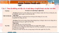 Câu 1. Tóm tắt những nét đặc sắc về nội dung và nghệ thuật của hai văn bản Văn bản
