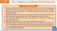 BÀI 7. ANH HÙNG VÀ NGHỆ SĨ (VĂN BẢN NGHỊ LUẬN) VĂN 10 YÊU CẦU CẦN ĐẠT