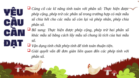 Củng cố các kĩ năng tính toán với phân số: Thực hiện được