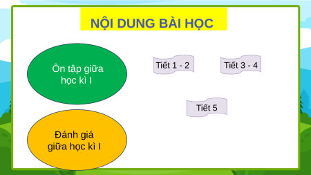 ĐẾN VỚI TIẾT HỌC MỚI ÔN TẬP GIỮA HỌC KÌ I NỘI DUNG BÀI HỌC Ôn tập giữa Tiết 1 - 2 Tiết 3 - 4 học kì I Tiết 5 Đánh giá giữa học kì I PHẦN ÔN TẬP (TIẾT 1 – 2)