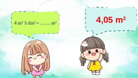 nhận được 1 điểm cộng. 4,05 m2 4 m2 5 dm2 = ……… m2 7 cm2 10 mm2 = ……. cm2 7,1 cm2