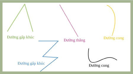 cong, đường gấp khúc trong các hình dưới đây: Đường gấp khúc Đường cong Đường thẳng Đường gấp khúc Đường cong