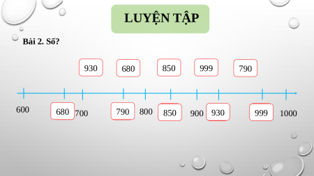 Bài 1. Ghép các thẻ thích hợp LUYỆN TẬP Bài 2. Số? 930 680 850 999 790 600 ? 680 700 ? 790 800 ? 850 900 ? 930 ? 999 1000
