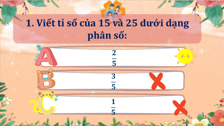 1. Viết tỉ số của 15 và 25 dưới dạng phân số: � � � � � �