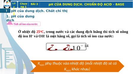 pH CỦA DUNG DỊCH. CHUẨN ĐỘ ACID - BASE P ng 1 1 1 LỚ Chươ BÀI 3