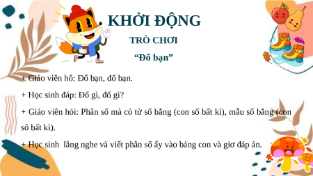 + Giáo viên hỏi: Phân số mà có tử số bằng (con số bất kì), mẫu số bằng (con số bất kì).