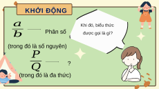 ĐẾN VỚI BÀI HỌC MỚI KHỞI ĐỘNG 𝑎 Khi đó, biểu thức 𝑏 Phân số được gọi là gì? (trong đó là số nguyên) 𝑃 𝑄 ? (trong đó là đa thức)