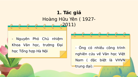 Thực hành đọc hiểu: Phân tích bài “ Khóc Dương Khuê” I. Tìm hiểu chung 1. Tác giả Hoàng Hữu Yên ( 1927- 2011) - Nguyên Phó Chủ nhiệm