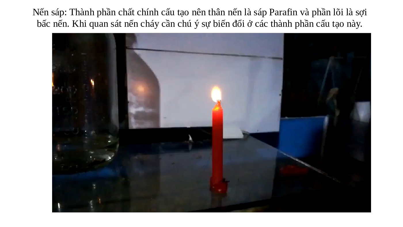 bấc nến. Khi quan sát nến cháy cần chú ý sự biến đổi ở các thành phần cấu tạo này.
