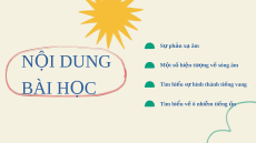 KHOA HỌC TỰ NHIÊN 7 BÀI 14: PH N Ả X ÂM Ạ Sách Chân tr i ờ sáng t o ạ NGUYỄN XUÂN PHƯ N Ơ G Vietjack.com S ph ự n x ả ạ âm NỘI DUNG Một s ố hi n t ệ ng ượ v s ề óng âm BÀI H C Ọ Tìm hi u s ể hìn ự h thành ti n ế g vang Tìm hi u v ể ô ề nhi m ễ ti ng ế n ồ