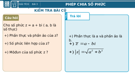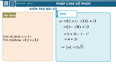 LỚP GIẢI TÍCH PHÉP CHIA SỐ PHỨC 12 BÀI 3 LỚP 12 TIẾT 22-GIẢI TÍCH Chương 4: SỐ PHỨC