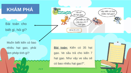 Bài toán: Kiến có 35 hạt làm phép tính gì?