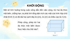 nhật (hình 2) có độ dài hai cạnh đáy là x(m), 2x (m) và chiều cao là 2 (m). Phép cộng, phép trừ hai
