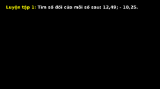 Luyện tập 1: Tìm số đối của mỗi số sau: 12,49; - 10,25.