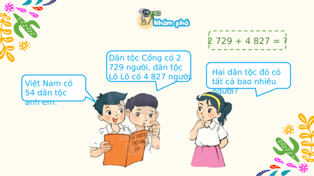 khám phá 2 729 + 4 827 = ? Dân tộc Cống có 2 729 người, dân tộc Lô Lô có 4 827 người. Hai dân tộc đó có Việt Nam có tất cả bao nhiêu 54 dân tộc người? anh em. 2 729 + 4 827 = ? 2 729