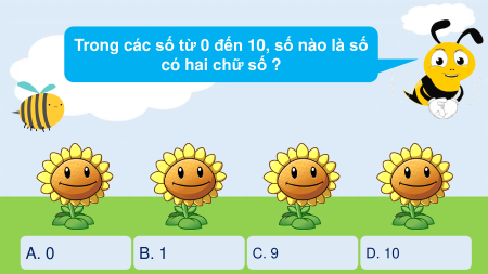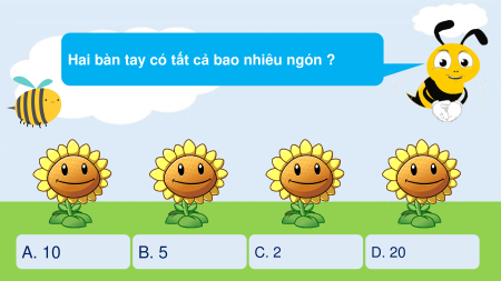 Hai bàn tay có tất cả bao nhiêu ngón ? A. 10 B. 5 C. 2 D. 20