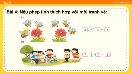 Bài 4: Nêu phép tính thích hợp với mỗi tranh vẽ: