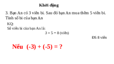 Số viên bi của bạn An là: 3 + 5 = 8 (viên) ĐS 8 viên Nếu (-3) + (-5) = ? BÀI 14