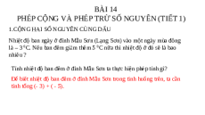 PHÉP CỘNG VÀ PHÉP TRỪ SỐ NGUYÊN (TIẾT 1)