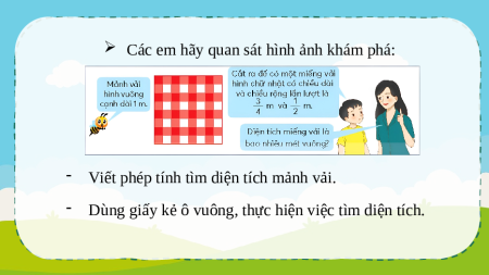 - Dùng giấy kẻ ô vuông, thực hiện việc tìm diện tích. 3 1