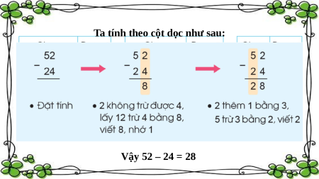 Làm thế nào tính được phép tính 52 – 24 = ?