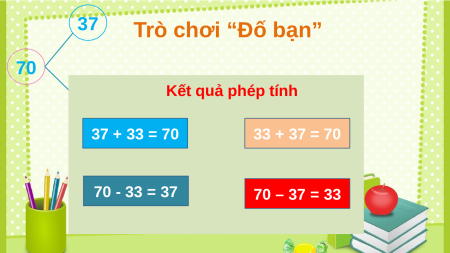 Trò chơi “Đố bạn” 70 33 Cách chơi: Kết quả phép tính