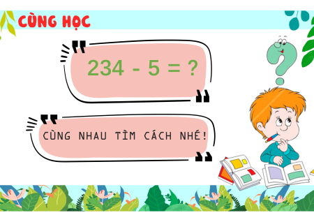 234 - 5 = ? CÙNG NHAU TÌM CÁCH NHÉ! Em đã làm bằng cách nào? 234-5=229 Đếm Tính