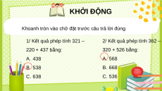 2/ Kết quả phép tính 362 – 220 + 437 bằng: 320 + 526 bằng: A. 438 A. 568 B. 538 B. 668 C. 638 C. 536