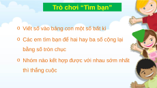 o Các em tìm bạn để hai hay ba số cộng lại bằng số tròn chục