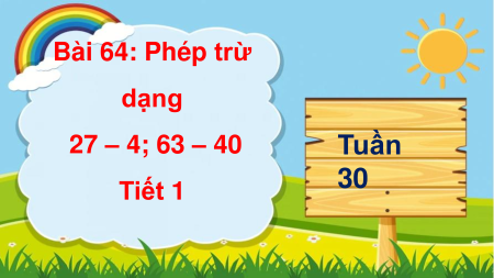 Bài 64: Phép trừ dạng 27 – 4; 63 – 40 Tuần Tiết 30 1 KHỞI ĐỘNG