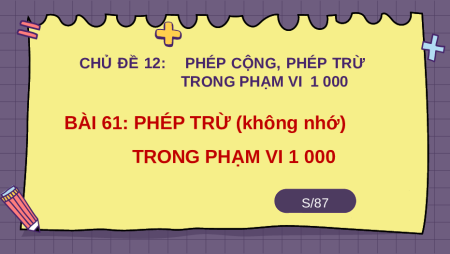 BÀI 61: PHÉP TRỪ (không nhớ) TRONG PHẠM VI 1 000 S/87