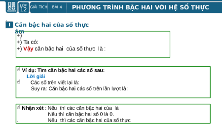 PHƯƠNG TRÌNH BẬC HAI VỚI HỆ SỐ THỰC 12 BÀI 4 LỚP 12 GIẢI TÍCH Chương 4: SỐ PHỨC