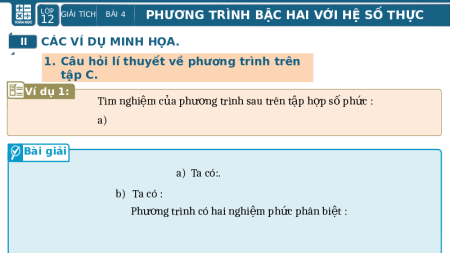 Phương trình bậc hai với hệ số thực. BÀI TẬP MINH HỌA. LỚP GIẢI TÍCH