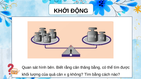 Quan sát hình bên. Biết rằng cân thăng bằng, có thể tìm được