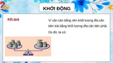 bên trái bằng khối lượng đĩa cân bên phải. Do đó, ta có:
