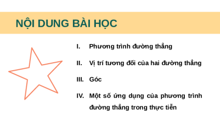 PHƯƠNG TRÌNH ĐƯỜNG THẲNG NỘI DUNG BÀI HỌC I.