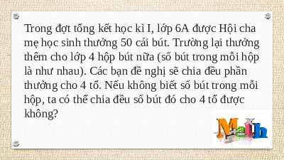 hộp, ta có thể chia đều số bút đó cho 4 tổ được