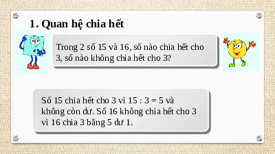 không còn dư. Số 16 không chia hết cho 3 vì 16 chia 3 bằng 5 dư 1.