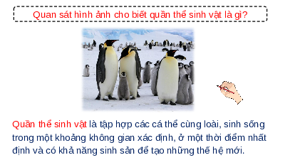 Quần thể sinh vật là tập hợp các cá thể cùng loài, sinh sống