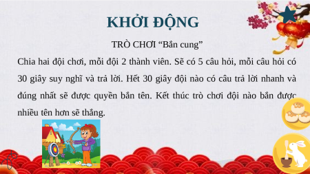 VỚI BÀI GIẢNG MÔN TOÁN KHỞI ĐỘNG TRÒ CHƠI “Bắn cung”