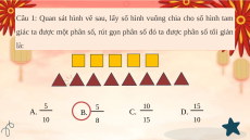 Câu 1: Quan sát hình vẽ sau, lấy số hình vuông chia cho số hình tam