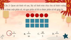 giác ta được một phân số, rút gọn phân số đó ta được phân số tối giản là: 5 5 10 15 A. B. C. D. 10 8 15 10