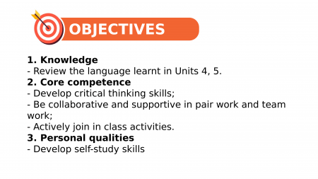 - Review the language learnt in Units 4, 5. 2. Core competence