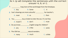 uncountable nouns; should and shouldn’t; wil and won’t; some/ any for amount. Overview
