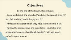 Units 4 – 5 – 6. Lesson 1. Language Objectives